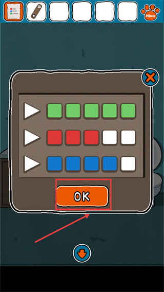 2、根據(jù)顏色對(duì)應(yīng)規(guī)則調(diào)整界面中的色塊,確認(rèn)匹配后點(diǎn)擊【OK】按鈕,即可推進(jìn)解謎流程。