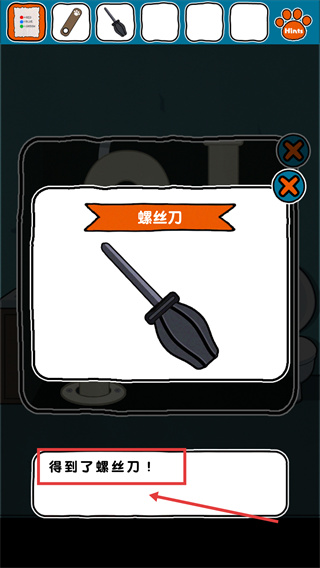 3、完成解謎后可獲得【螺絲刀】道具,該道具可用于后續(xù)場(chǎng)景中拆卸螺絲類機(jī)關(guān)。