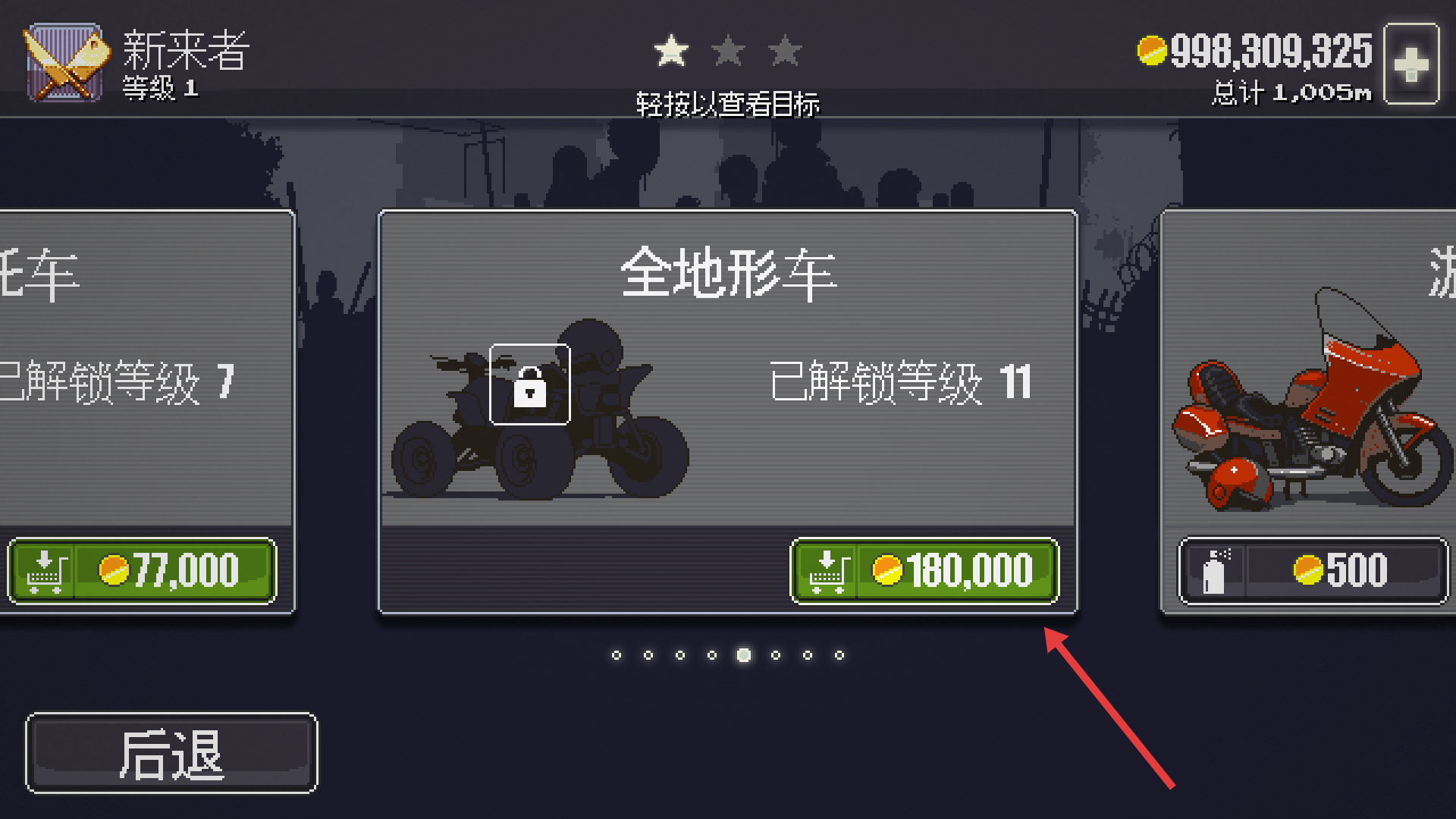 1、選合適車輛如【全地形車】-【已解鎖等級(jí)11】-【180000】,用金幣解鎖提升突圍時(shí)的速度與戰(zhàn)斗力。