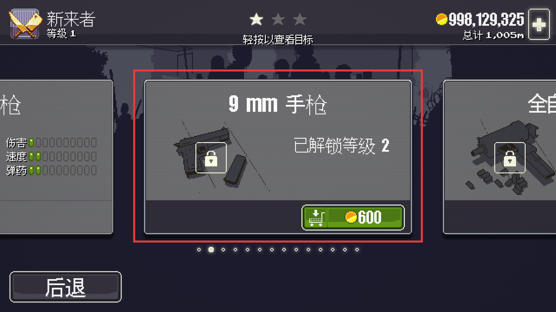 2、優(yōu)先選【9mm手槍】-【已解鎖等級(jí)2】-【600】,解鎖后提升射擊傷害,助力擊殺僵尸突破包圍。