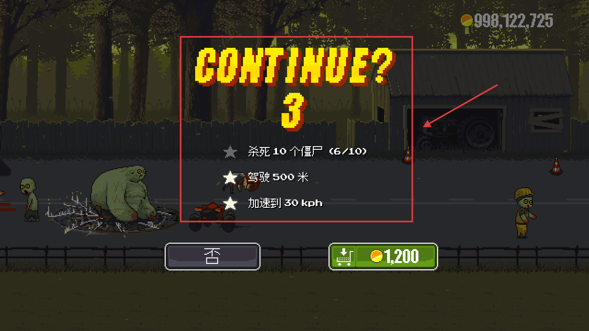 4、出現(xiàn)【CONTINUE】提示時(shí)盡量選擇繼續(xù),完成【殺死10個(gè)僵尸】-【6/10】任務(wù)獲取更多獎(jiǎng)勵(lì)。