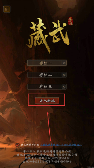 1、進入游戲【藏武】主界面,在【存檔一】【存檔二】【存檔三】中選擇一個存檔開始。